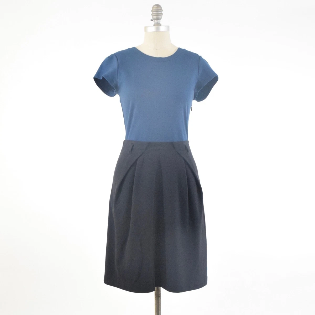 Theory Dress 10 Blue Amp Black Stretch Ponte Knit Short Sleeve Fit Amp Flare Mini Ebay